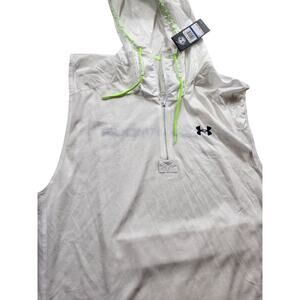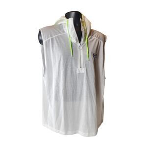 Under Armour Mens XL White Sleeveless Windbreaker Hoodie Tank Top Fitted Quick Dry 4-Way Stretch Lightweight Activewear Workout Gym Athleisure 1351063