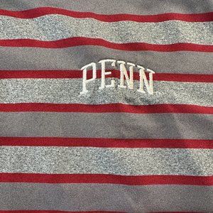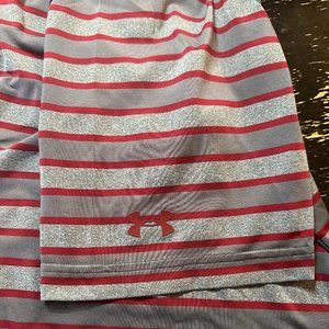Under Armour collegiate polo. Gray and burgundy stripes.