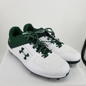 Under Armour Yard Low ST Metal Baseball Cleats 16 Mens White Green Lace Up NEW