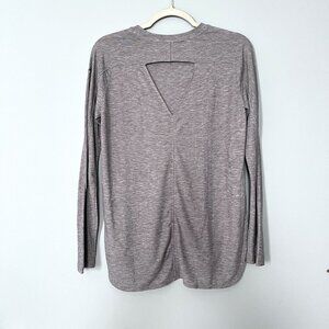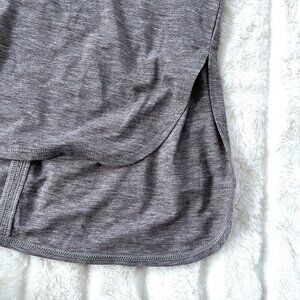 Lightweight workout shirt. Cutout back detail. Split hi-lo hemline.