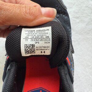 Durable and lightweight youth sneakers designed for comfort and performance. Features breathable mesh and secure fit for active wear. Minimal wear. Under Armour youth boys shoes size 1. Smoke free home.