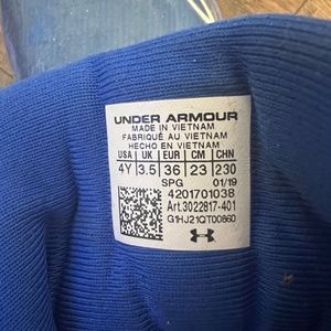 Blue and white Under Armour size 4Y football cleats. Gently used.