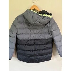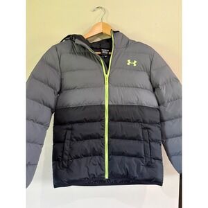 Under Armour Youth Medium Gray Black Green Puffer Jacket Winter Coat Outwear