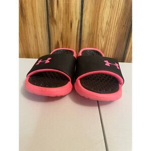 Under Armour Youth size 3 Y hot pink & black slip on flip flop slide unisex
