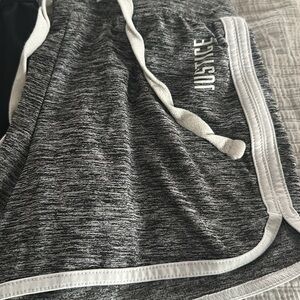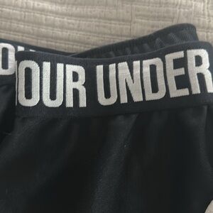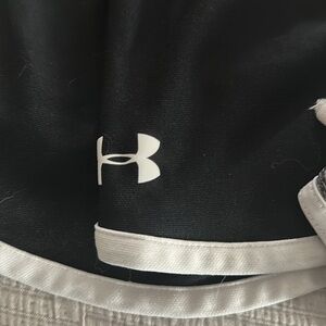 Set of Under Armour black shorts and Justice gray shorts. Comfortable and stylish for workouts.