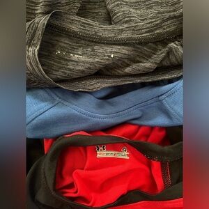 Red/black is heat gear. the material tag missing, but I believe it’s cotton/polyester material