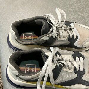 These Under Armour boys' sneakers in size 8 are very comfortable and stylish, perfect for casual wear. The lace-up closure and rubber outsole provide a secure fit and support for active kids. The white color and logo accents add a trendy touch to the classic sneaker design, making them a great choice for both boys and girls. With moderate cushioning and a flat heel style, these sneakers are both practical and fashionable for everyday wear.Please browse on my listing for more choices.