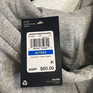 Under Armour essential fleece hoodie, heathered gray loose fit size XL NWT
