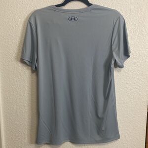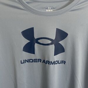 Under Armour velocity graphic T loose fit women’s size medium new with tags 100% polyester light blue with a navy blue logo right on the front
