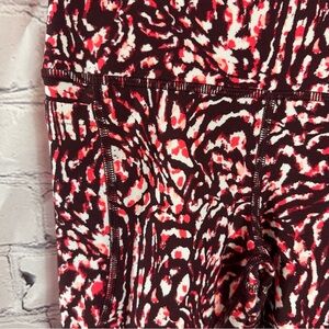Dynamic compression leggings with bold burgundy and pink design. Ideal for active wear.