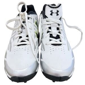 Under Armour lace up white/neon/silver athletic sneaker size 8