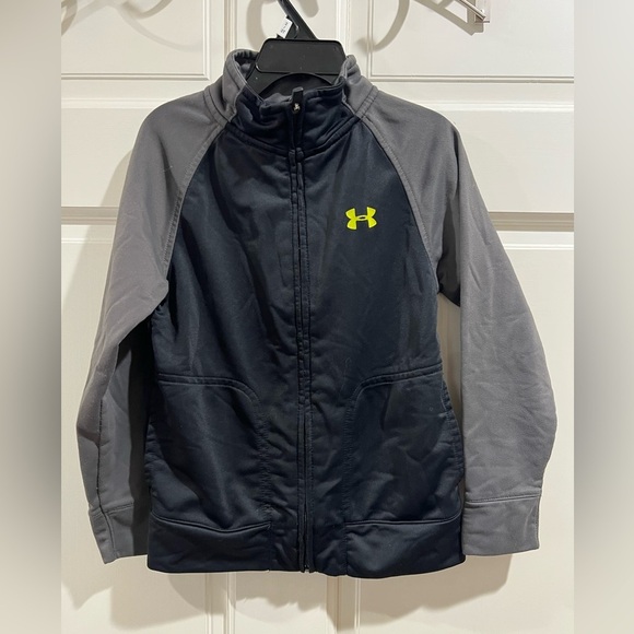 Under Armour light full zip jacket size 5. Black/ gray/yellow