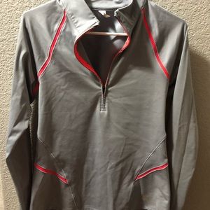 Under armour gray and orange long sleeve shirt. Size medium Heat Gear. Excellent / almost new condition. Smoke free home. The back has a few cut outs which are super cute.