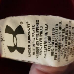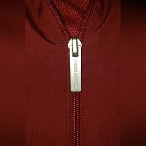 vintage style windbreaker. size small. color is best represented in pic #1. it is maroon. zip front. lined. front white trim. front pockets. soft banded bottom and sleeve cuff. style gives me a gym teacher look.