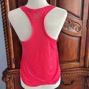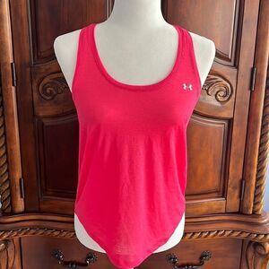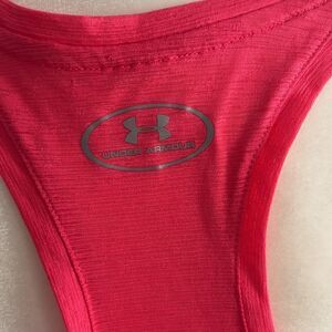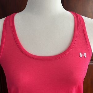 Under Armour pink athletic tank- size S Lay flat measurements 17 inches pit to pit 22 length from shoulder EUC