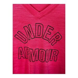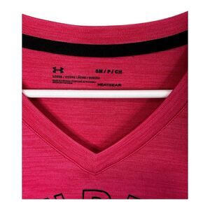 EUC smoke free dog friendly home Under Armour pink coral colored v neck size small lightweight t shirt