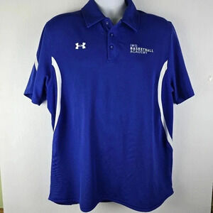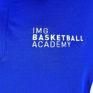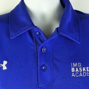 Under Armour royal blue heat gear short sleeve shirt IMG Academy emblem. IMG Academy is an elite basketball school in Florida. Excellent used condition.