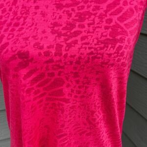 UNDER ARMOR women’s size S, semi fitted racer back with a knot tank top. Top has a burnout texture. Coral color. Racer back with a knot. Rounded hem.