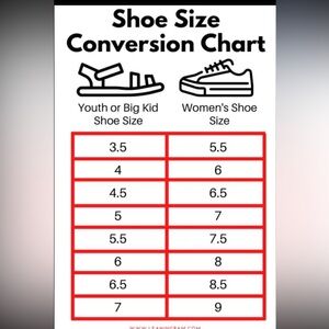 Good condition. Hardly worn - size 7 Y but fits women’s size 9 perfectly. - please look at the shoe size chart in pictures