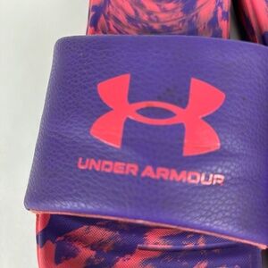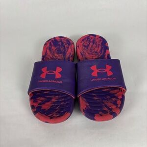 Under Armour size Y4 UA Graphic Logo Purple/Pink Slides/Sandals