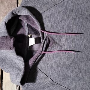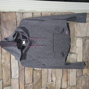 Under Armour size large gray and pink semi-fitted hooded long sleeve sweatshirt