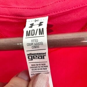 Under Armour slim fit pink tshirt size medium. Shirt runs a bit small, is in excellent condition.