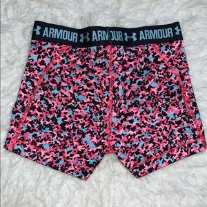 Under Armour workout spandex. Hot pink, blue and black.