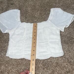 Cottage Core, Lagen Look white crop top, smocked blouse, puff sleeve top, square neck top, short sleeve shirt, lightweight summer blouse, ruched crop top, textured cotton top, casual white top, feminine style blouse., BoHo, Prairie Style Artsy, Bohemian, layered, layering, Country, Western, Concert, Festival wear, peasant, coastal grandma, peasant, fairy