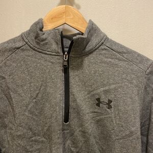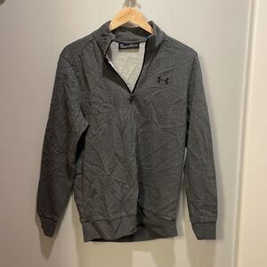 Under Armour woman’s grey half zip sweatshirt. It’s super cute and in good condition. It’s a size Small.