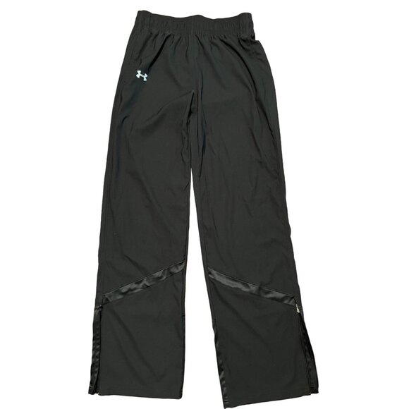 Under Armour women's black pants in size SM, designed with an elastic waist, reflective strips, and pockets. Comfortable and stylish for everyday wear, workouts, and running.