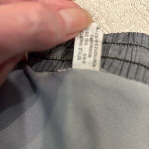Women’s size small grey with pink trim. Built in short good condition. Small spot in one area on back(see pictures). Black strip down leg