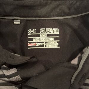Under Armour 2 X Black and Gray Striped Men's Polo Shirt Short Sleeve