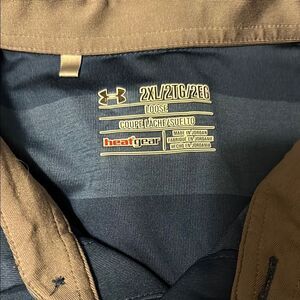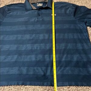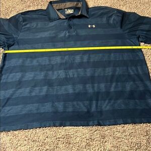 This Under Armour polo shirt in blue features a tonal striped pattern and the iconic logo on the chest. Made from performance material, it offers a clean and sporty appearance ideal for athletic wear.