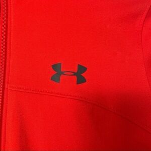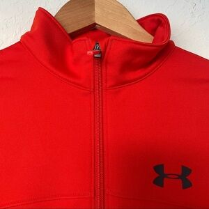 Under Armour-Boys' Armour Fleece Full Zip- Size: Youth LG-Color: Orange. Good Preowned with normal signs of use, no rip, tear, or foul odor. Please see pictures as they are a very important part of the description. Solid preowned condition.