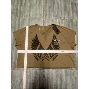 Under Armour Dwayne Johnson Rock Green Skull Cropped Loose Tee Top L Large Women