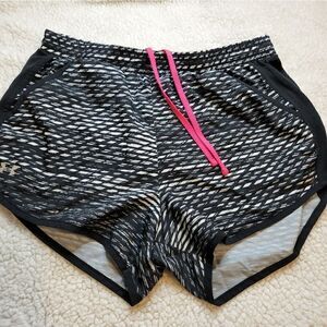 Under Armour HeatGear Running Shorts Womens M Semi-Fitted Black Gray Lined,used but still in good condition, check all photos for more détails, smoke free home.