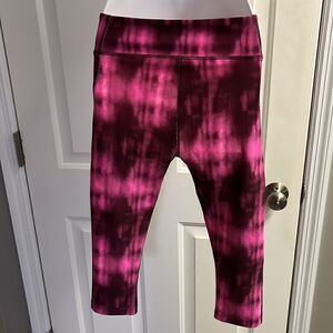 Under Armour Hot Pink/Burgundy Tie Dye Pattern Cropped Compression Leggings- Med