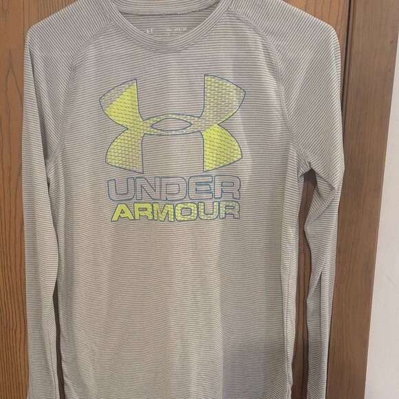 Under Armour-Long Sleeve Gray and White Striped Heat Gear Loose Fit-Youth XL
