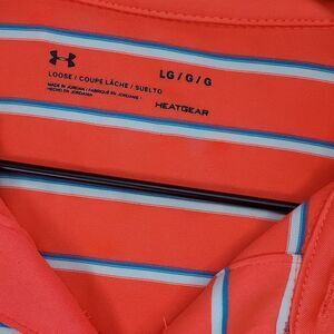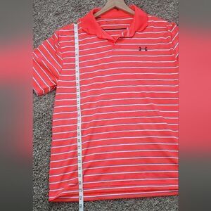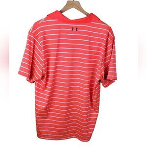 Under Armour Orange Striped Golf Polo Shirt, Size Large