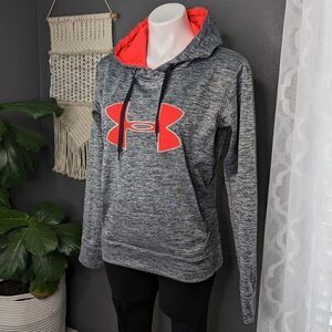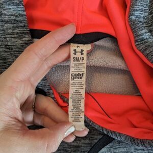 Under Armour grey and neon pink storm Cold Gear sweatshirt. The pink is more of a neon pink, not red like it photographed. In great pre-owned condition.