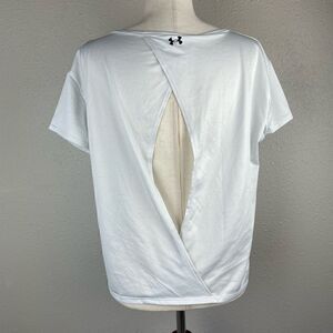 Classic athletic top featuring a stylish fit by under Armour. It is an excellent preowned condition and measures 21 inches armpit to armpit length flat and is 22 inches in length from the shoulder to the hem.
