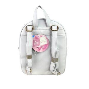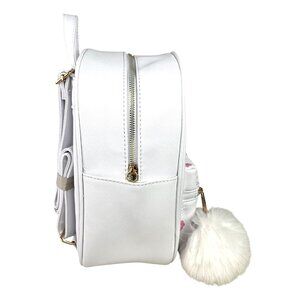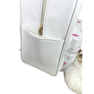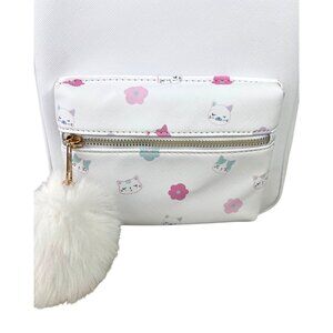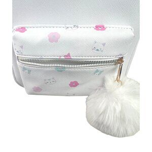 Under One Sky Decorative White Backpack Cute Cat & Flower Print Pom Pom Accent