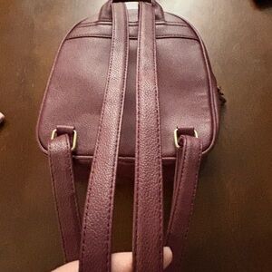 Charming maroon backpack with playful gold heart accents. Ideal for everyday use.
