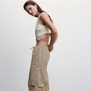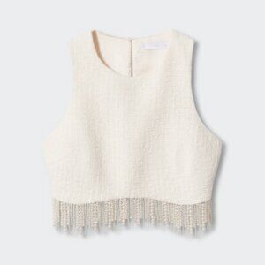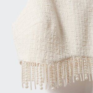 Recycled cotton-blend fabric. Cropped design. Rounded neck. Wide straps. Pearl-effect details. Side zip fastening.