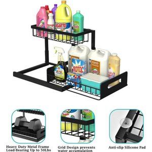 Under Sink Organizer Pull Out Drawer 2 Tier Slide Out