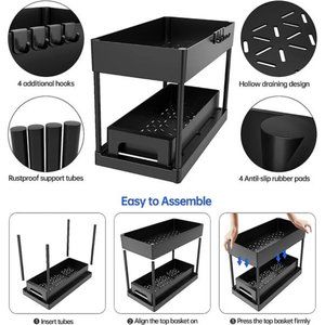 🧿【Multifunctional storage】 under sink organizers and storage Make the most of your storage space, the double-layer design helps you store more items in the same space. Comes with a cup and four hanging buckles to store some small parts, saving your space better.