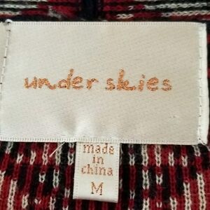 Under Skies Aztec Tribal Dark Red Navy Blue Belted Open Cardigan Size M Boho
