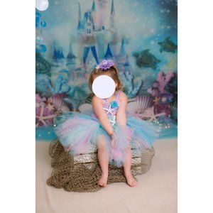 Under The Sea Castle Mermaid Birthday Backdrop for Photo Backdrop 270cmx180cm