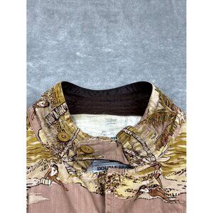 Under Two Flags Shacket Shirt Mens Medium Beige Hawaiian 100% Cotton Button-Up