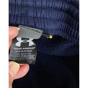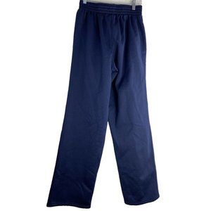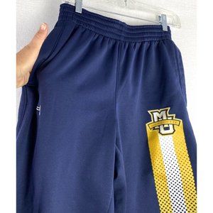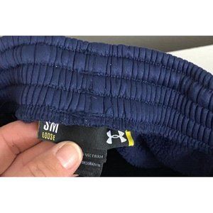 Elevate your activewear game with these Under Armour sweatpants featuring a wide-leg design and fleece lining for ultimate comfort. Perfect for gym and training, as well as basketball, these pants come in a size S with a waist size range of 24"-28" and an inseam of 30". The solid blue color and Marquette University theme add a touch of style to your workout wardrobe.